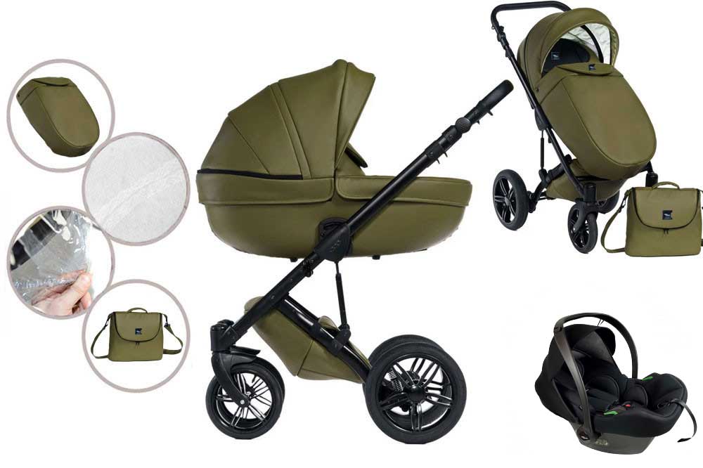 - Babyschale kann am Gestell des Kinderwagens befestigt werden (mit Adaptern, die im Paket enthalten sind)
