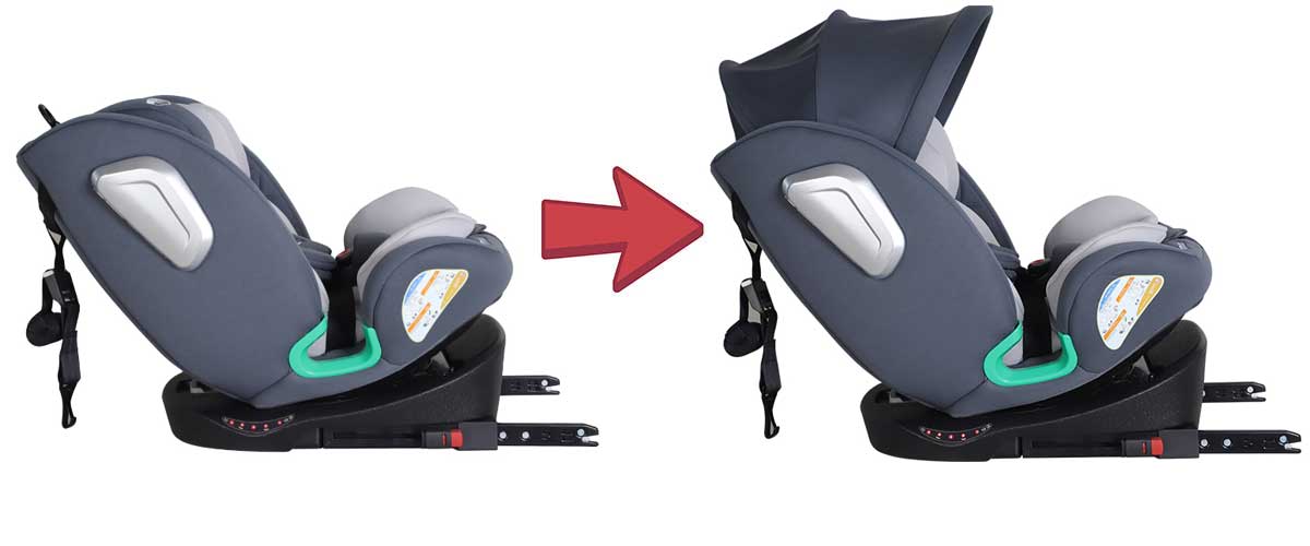 Die verstellbare Rückenlehne und die höhenverstellbare Kopfstütze sorgen dafür, dass Ihr Kind auch auf längeren Fahrten bequem schlafen kann.